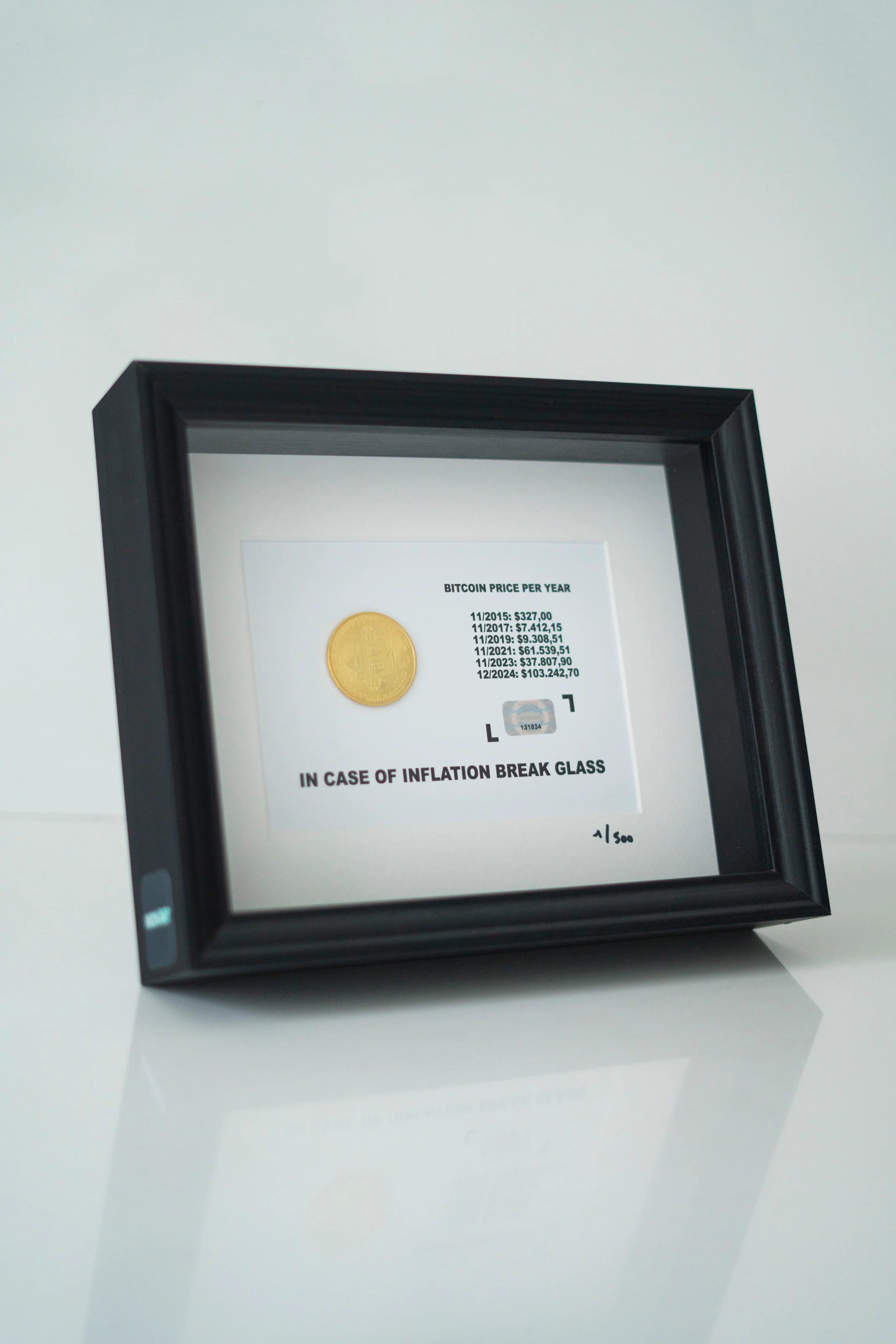 The luxury frame is made from black wood and has a size of 28,5cm wide on 23cm high. It has a very deep 6cm frame to give it that extra depth. Covered with a high quality plexiglass to give the artwork even more amazing looks. Real glass won't even be fun to ship as we would need to add glue to the box to fix the broken glass due to shipping.Â
