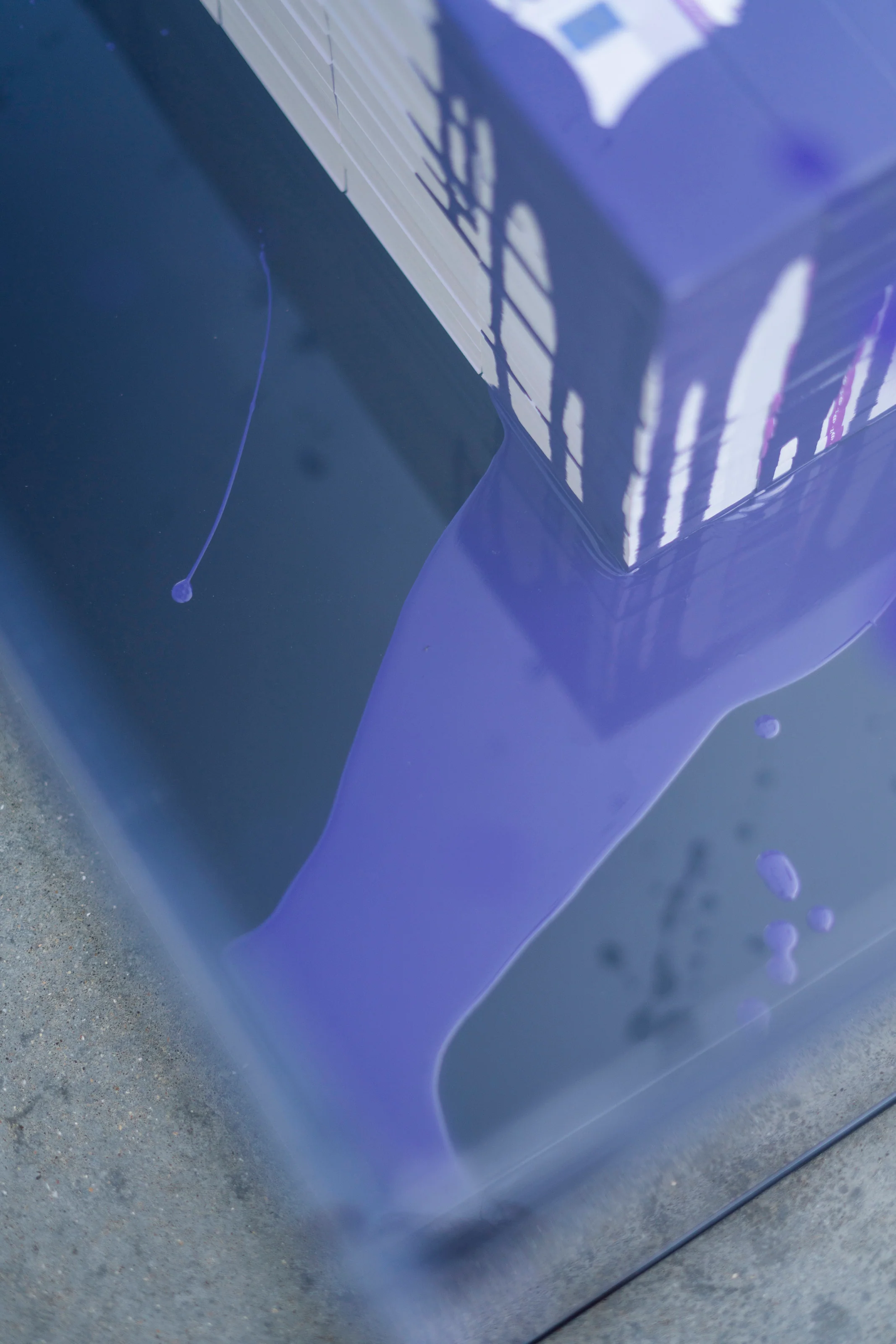 Set within a minimalist, industrial gloss black base, the vibrant purple paint splatters feel chaotic yet deliberate, echoing themes of decadence, rebellion, and pop-art irony. The table’s name, “Purple Love,” alludes to both royalty and ruin, affection and obsession, inviting viewers to confront their own relationship with luxury and value.